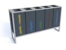 Kosz do segregacji TEMIDA V 60l  na podwyższeniu składający się z 5 pojemników do segregacji odpadów, każdy o pojemności 60l .