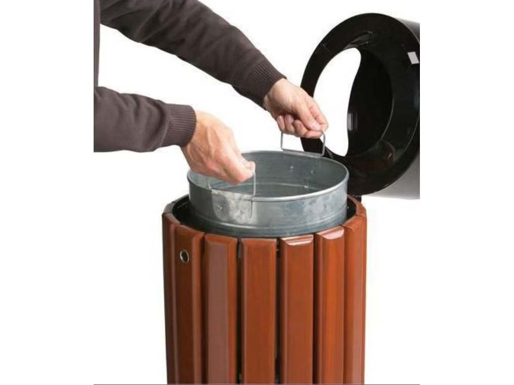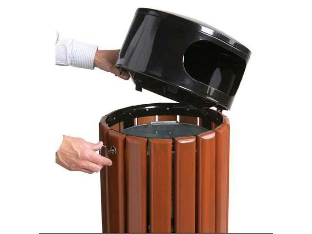 Owalny, stalowo-drewniany, z pokrywą – kosz na śmieci LION