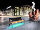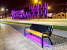 Dodatkowo naładowana w dzień ławka po zmierzchu świeci kolorowym światłem.