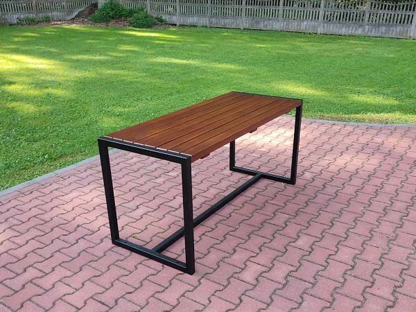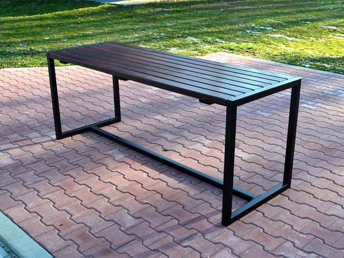 Stół stalowy miejski ANNA to klasyczny prostokątny stół do ogrodu lub parku. Dobierz z naszej oferty dowolną ławkę stalowo-drewnianą i stwórz zestaw ogrodowy. Zobacz pasujące do stołu ławki bez oparcia lub krzesła miejskie do ustawienia po krótszej stronie blatu.
