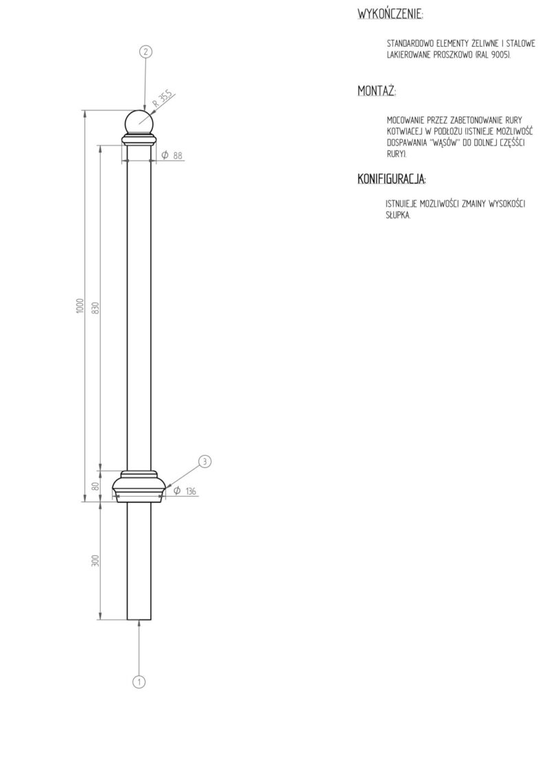 - słupek może posiadać uchwyty na łańcuch