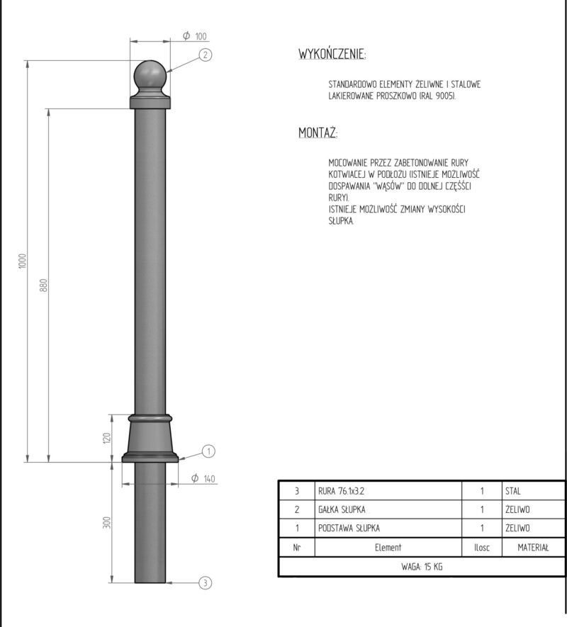 - słupek może posiadać uchwyty na łańcuch