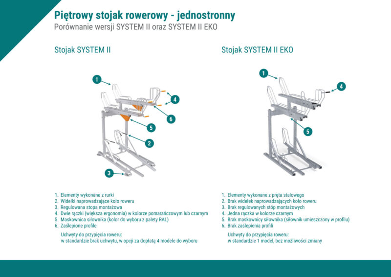 Stojak rowerowy piętrowy, dwupoziomowy | SYSTEM II EKO | Jednostronny