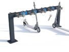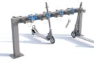 Stojak umożliwia zapięcie hulajnóg i zabezpieczenie ich przed kradzieżą.