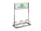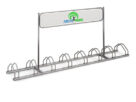 Stojak rowerowy KARAT z konstrukcją reklamową i szyldem reklamowym. Wspaniały nośnik reklamy dla twojego produktu, sklepu lub firmy.